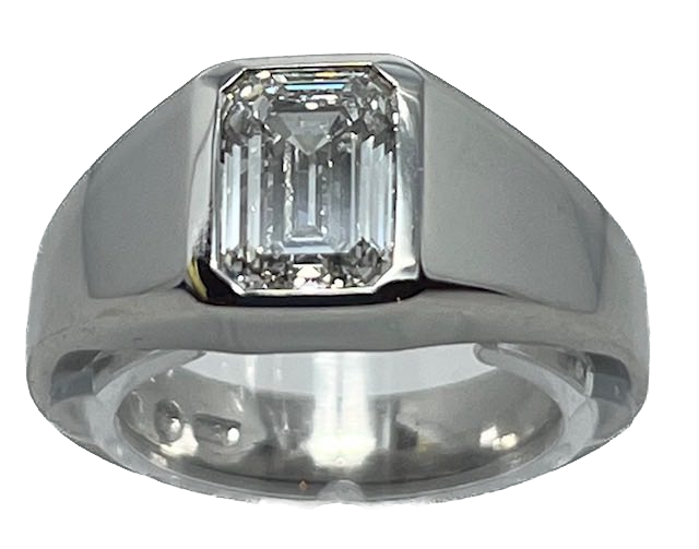 Gents Ring 18 KT WG Diamond 2,,01ct Emerald Cut